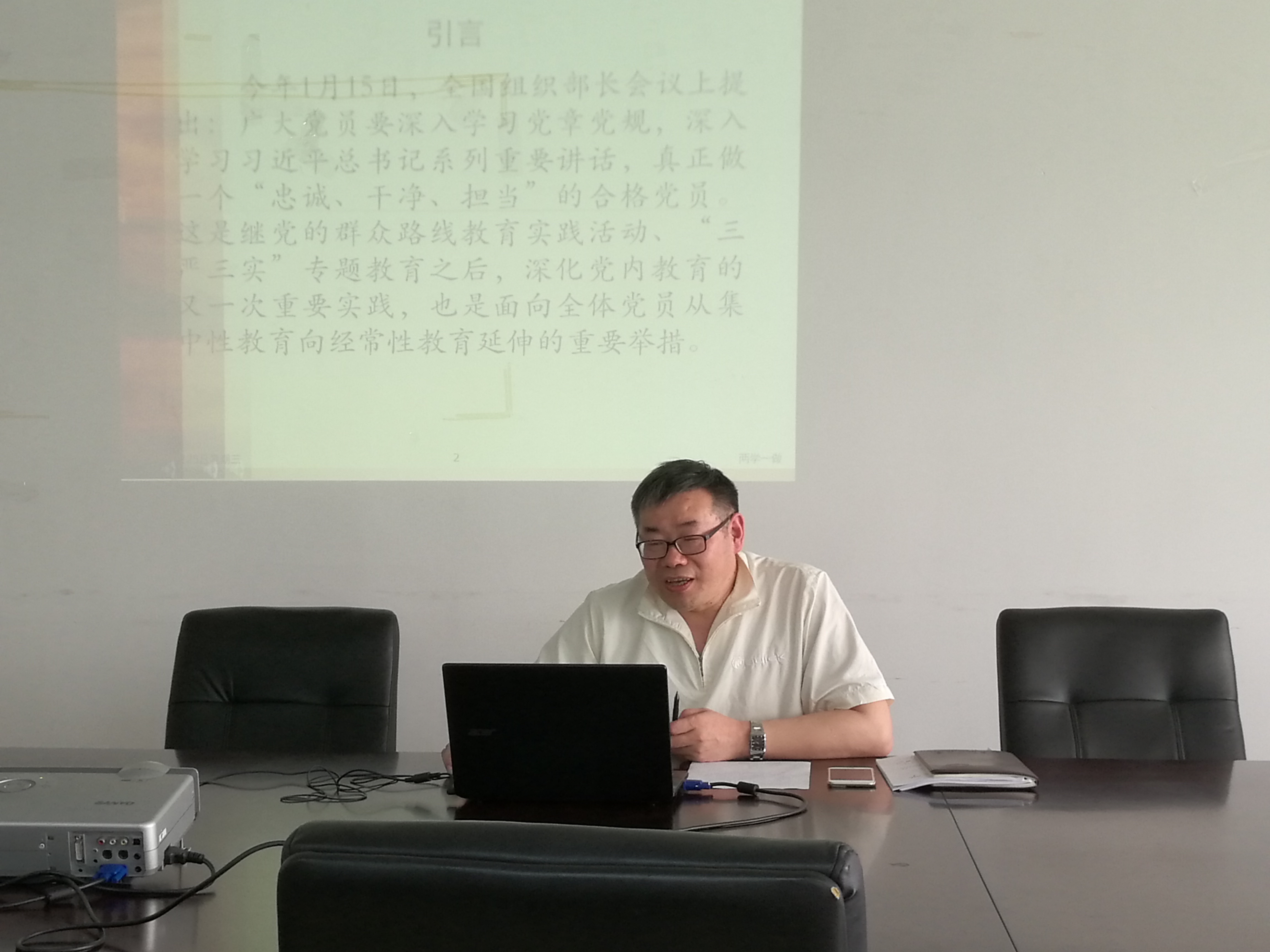 陈耀辉副院长从习近平总书记提出的要做“忠诚、干净、担当”的合格党员引入,从“以党章为镜,坚决维护党章党规的权威性 ”、“以习近平总书记重要系列讲话精神武装全党”、“做忠诚干净担当的好干部、好党员” 三个方面给教师党员们进行了详细讲解。陈耀辉副院长带领大家学习了党的纪律发展历程,学习了习近平总书记关于治国理政战略思维的新发展,并从坚定理想信念、坚持和人民站在一起、坚持优良作风、坚持反腐倡廉等方面提出倡议,号召教师党员们要争做忠诚、干净、担当的好党员。