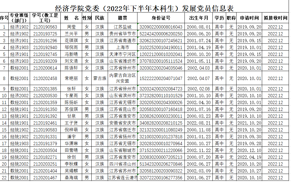 根据《发展党员工作实施细则》有关规定,经凤凰娱乐城官方 基层党支部考察、凤凰娱乐城官方 党委预审,拟接收周莹等22名本科生人为中共预备党员。现予以公示: