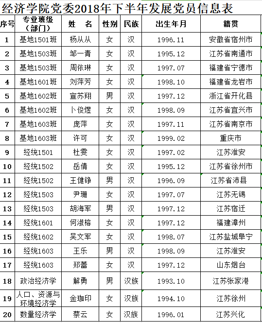 党委预审,拟接收杨丛丛等20名同志为中共预备党员。现将名单予以公示:
