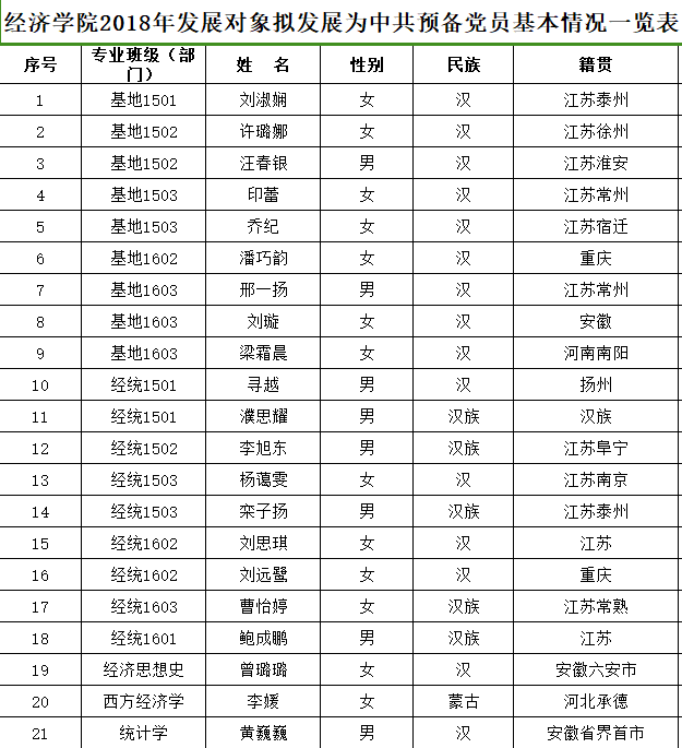 党委预审,拟接收刘淑娴等21名同志为中共预备党员。现将名单予以公示: