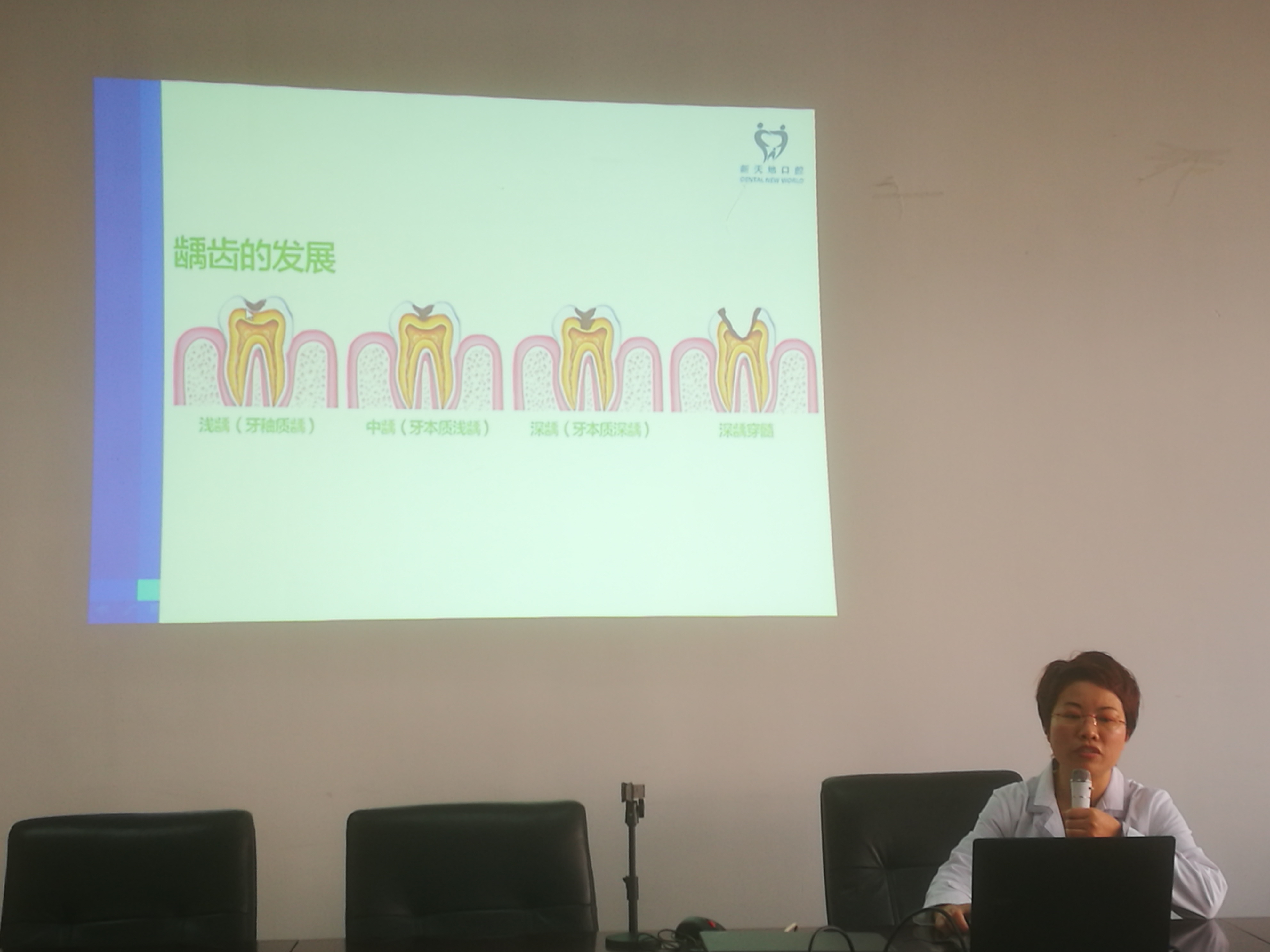 周翠平医生首先给各位教职工进行了“口腔卫生宣教”。她从牙齿健康标准、龋齿的发展、根管治疗、牙周病防治等几个方面给大家普及了口腔卫生知识,并给出了常见口腔疾病的解决方案。周医生倡导大家从平时做起,从小事做起,防患于未然。接着,各位老师就自己的疑问与周医生进行交流,周医生热情解答了大家的问题。最后,口腔医院的医生为各位老师进行了口腔义诊,针对每位老师的口腔问题,提出了不同的治疗方案。活动收到了很好的效果。