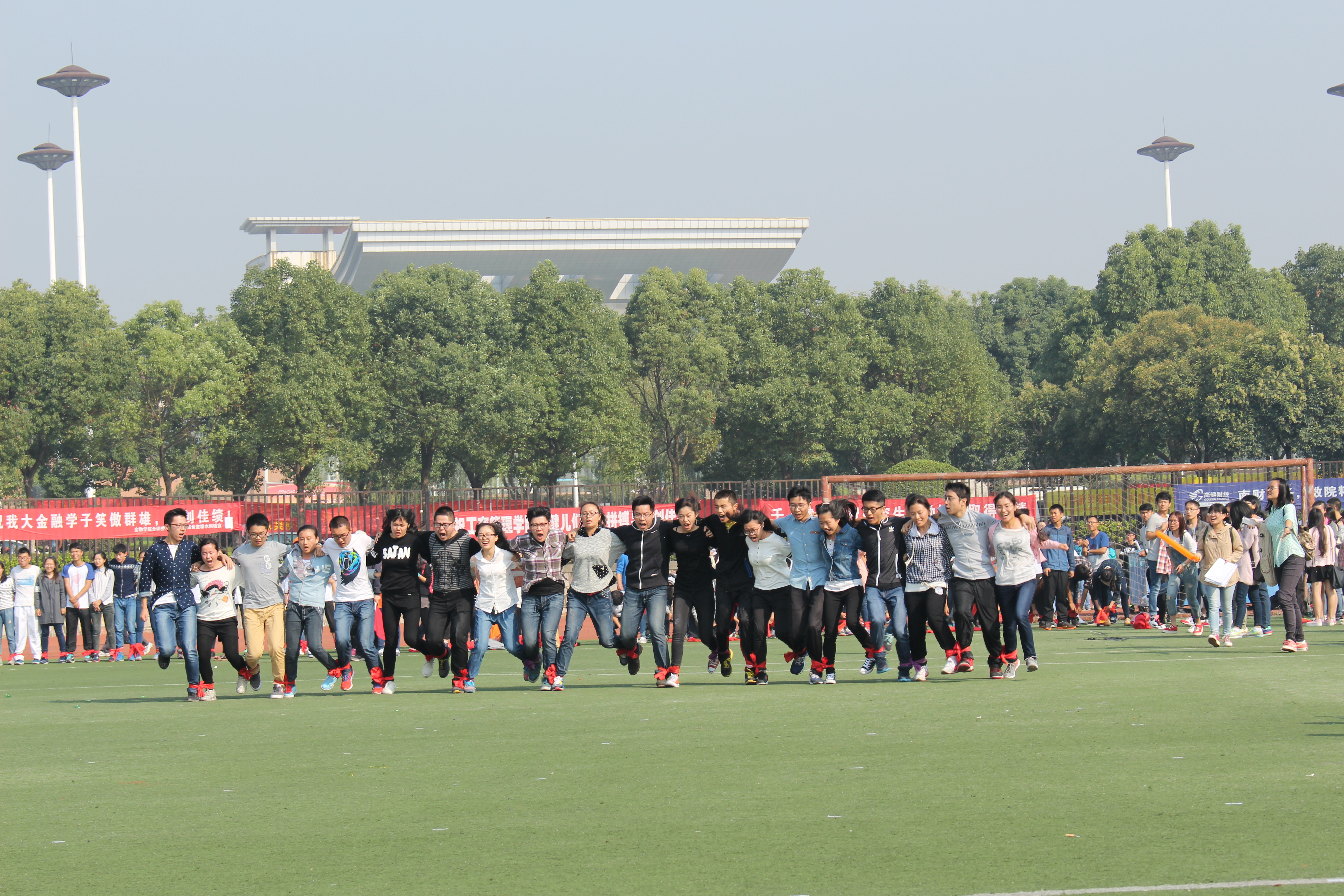 英姿飒爽,沙场秋点兵;笑傲赛场,青春显活力。红色的跑道上,刘源同学迅速调整状态,采取“稳中求进,最后冲刺”的策略,奔跑的蓝色身影是运动场上最美的风景;三级跳远比赛中,只见梁淑华同学咬紧牙关,利落地起跳,稳健落地,在空中划出优美的弧线;陈嘉辉同学在铅球比赛中卯足了劲,全力以赴,转身猛力一推,将球奋力投出;团体项目绑腿跑赛时,经院健儿们迈着整齐的步伐,伴着“左、右、左”的口号声,二十个人手拉手、肩并肩,跟着节奏,有条不紊地向前方跑去,口号声也越发响亮;接力赛中,大家鼓足力气,奋力前进,一根木棒传递共同的目标,合作精神让经院蓝夺人眼球……活跃在本次运动会赛场上的不仅仅有逐梦扬威的学生,更有志气高昂的教职工们。凤凰娱乐城官方