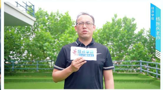 杨振兵老师说:我衷心祝愿可爱的同学们前程似锦,今天你以南财为骄傲,明天南财以你们为自豪。