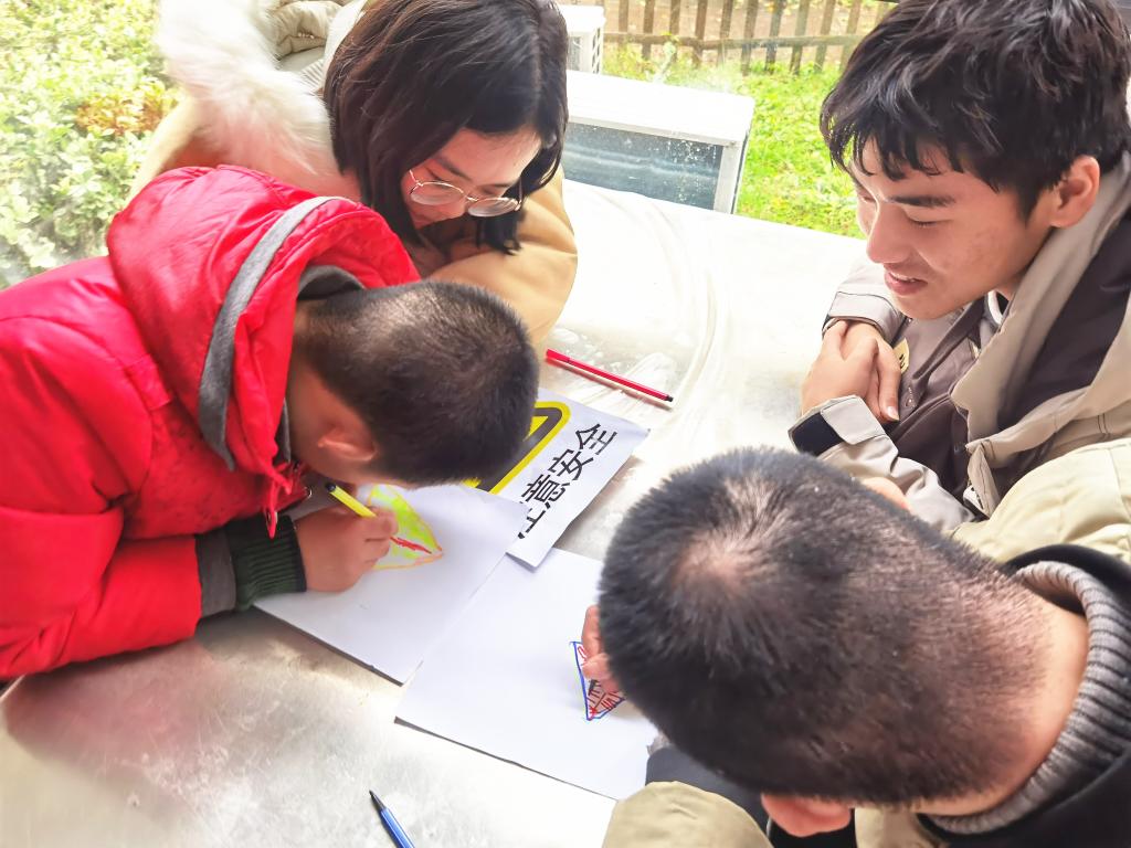 活动在欢快的氛围中进入尾声,学员们自信地展示自己的作品。他们不仅学会了辨识安全图标的含义,又巩固了有关形状的知识,还感受到了来自志愿者的热情关怀,体验到寓教于乐的学习乐趣。