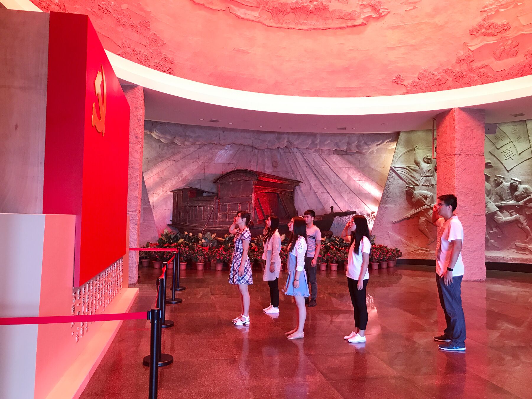 党委副书记郝园园老师号召同学们坚持学习习近平总书记系列重要讲话精神,不断提升自我的党性修养和爱国情怀。7月5日、6日,在本科生第一支部书记聂平老师的带领下,部分本科生党员赴中国共产党的诞生地——嘉兴南湖进行实地学习和实践。在红船旁,党旗下,党员同学们庄严地重温入党誓词;在南湖革命纪念馆,党员同学们认真参观,惊叹于中国共产党成立96周年以来带领中国人民走过的辉煌发展之路。同学们驻足于紫荆花电子显示屏下,望着邓小平同志与撒切尔夫人的合影,更加真切地体会到祖国强大、民族复兴的伟大意义。