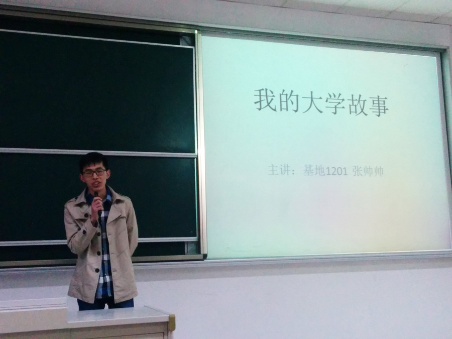 张帅帅同学曾获2014年度国家奖学金、美国大学生数学建模竞赛一等奖、江苏省大学生非理科数学竞赛一等奖等,并担任2014年青奥会开闭幕式升旗手。目前,张帅帅同学已被复旦大学世界经济学专业录取。在分享会上,他给在座同学分享了自己在大学期间参加各类学术活动及竞赛的感受、心得和经验体会,并重点从考研目标确定、复习进度安排、笔试复试发挥等几个方面详述了自己的备考故事。张帅帅同学勉励在场的学弟学妹一定要多读书、读好书,积极参加各项有益的第二课堂活动,科学合理地进行大学生涯规划,提升能力,充实自己,完满地度过大学生活。
