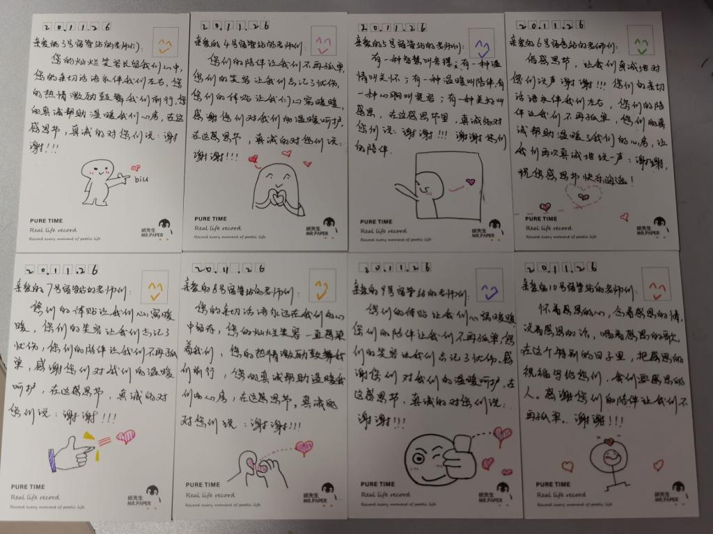 同学们将亲手书写的祝福卡片送给当天的授课老师和凤凰娱乐城官方