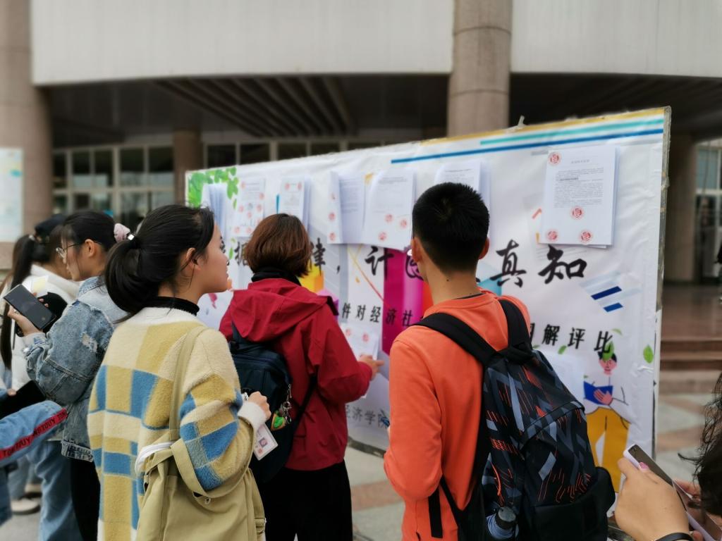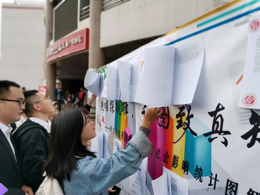 同学都热情参与,积极响应。递交展览的参赛作品内容多样,格式精美。有从疫情下国民经济走势入手,也有从食品安全,零售业发展情况等小切口切入,涵盖了多个领域的重大突发事件统计分析,专业水平可见一斑。秉持着公平公正的原则,学术部在中苑食堂设置了作品展览的投票栏,全校同学都可参与投票。同学们经慎重地考量后,纷纷向心仪作品投出了属于自己的一票。