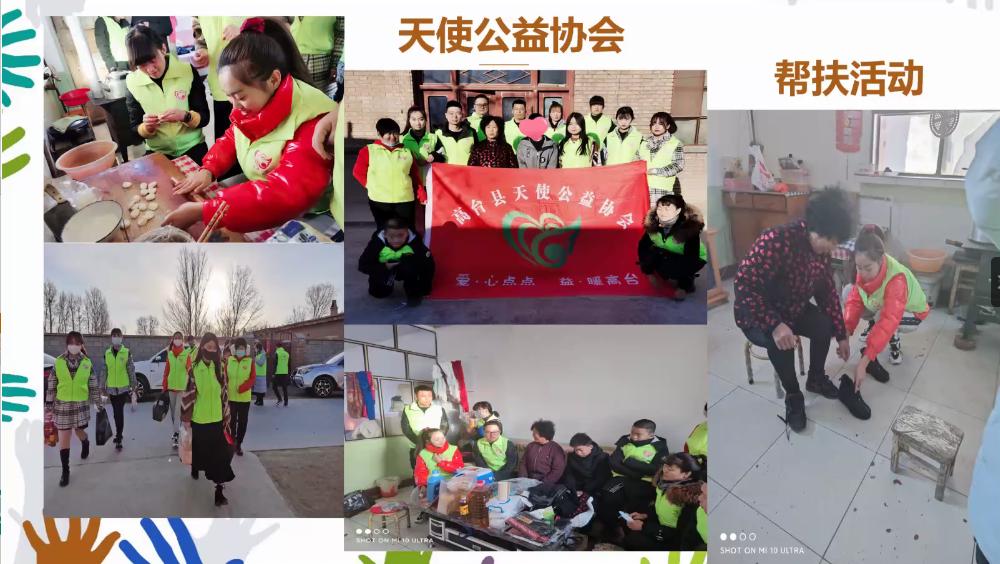 志愿服务活动照片合集视频,并向同学们介绍了此次参与分享活动的志愿者代表。