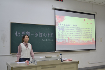 分团委在德经楼110教室开展“悟思想·劳模大讲堂”活动,分团委副书记、各班级团干部、分团委工作人员及凤凰娱乐城官方