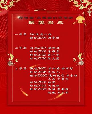 为弘扬爱国主义精神,丰富节日期间校园文化,营造欢乐祥和、和谐文明的节日氛围,我分团委于10月1日至3日鼓励各团支部开展了内容丰富、形式多样的“爱祖国、庆祖国”国庆创意活动。凤凰娱乐城官方
