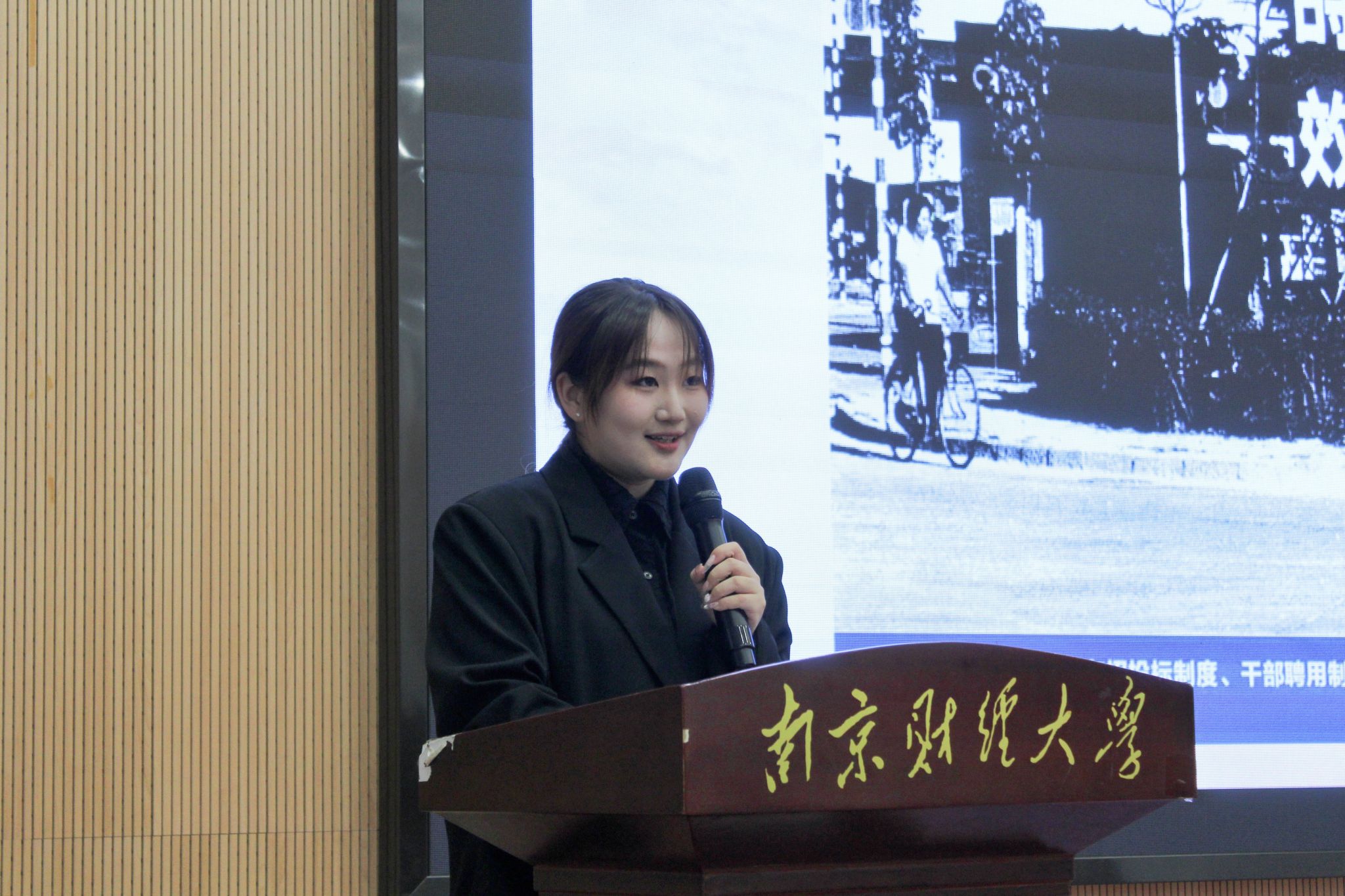 党委副书记贾亦璞老师作总结发言。贾老师首先对同学们的积极参与和深入思考给予高度肯定。贾老师强调,创新是发展的第一动力,当代中国在改革创新的发展下取得巨大成就。贾老师呼吁广大青年学子要以对党忠诚之心、对人民担当之责,把握时代机遇,勇立潮头、奋勇搏击,在实现中华民族伟大复兴的征程中绽放青春光彩。