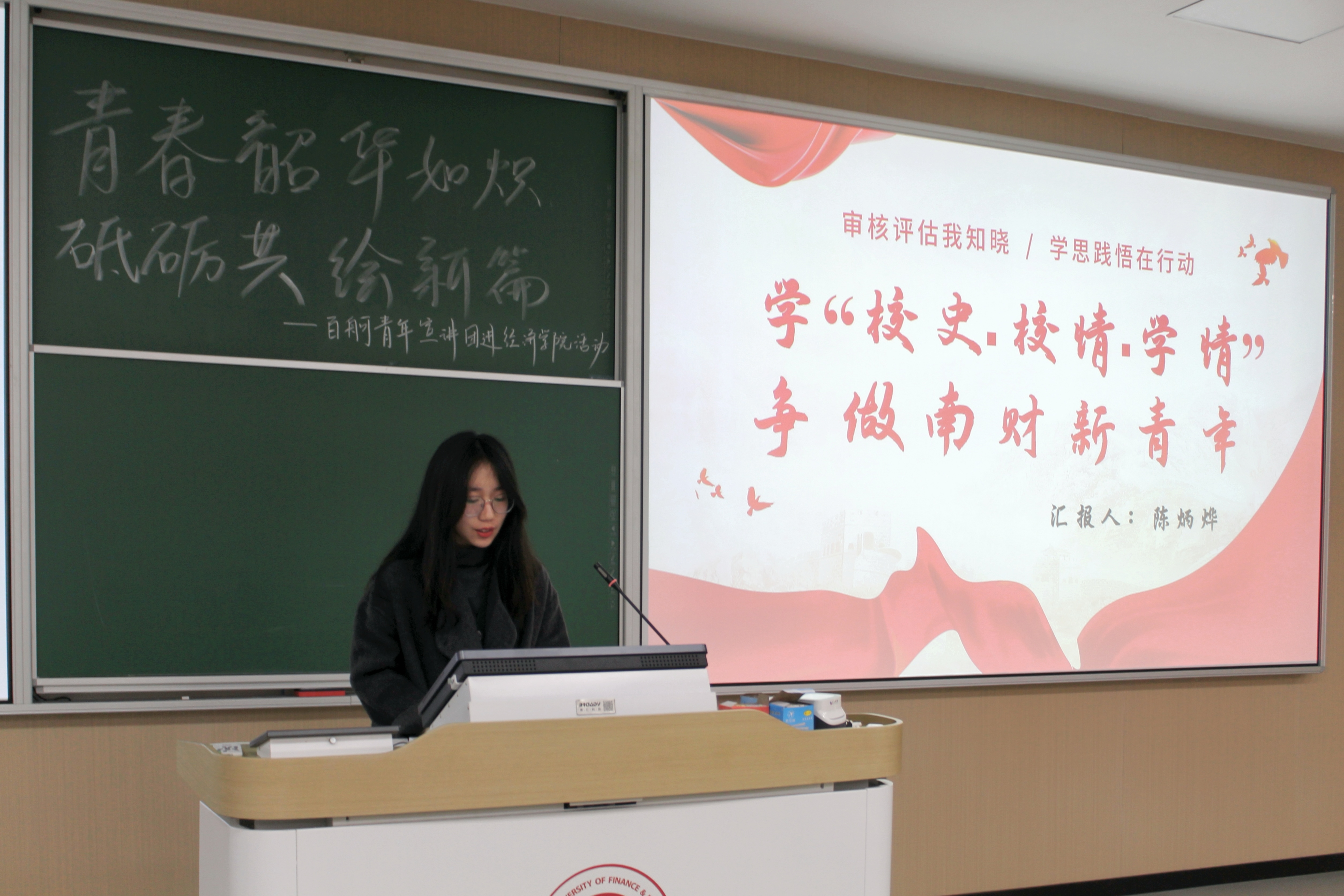 的文化底蕴。在宣讲的尾声,她详述了审核评估的作用与重要性,并鼓励南财学子积极参与,从课堂到课外全方位展现良好素养,以建设者之姿、奋斗者之姿,勇担使命,不负韶华,投身于中华民族伟大复兴事业。