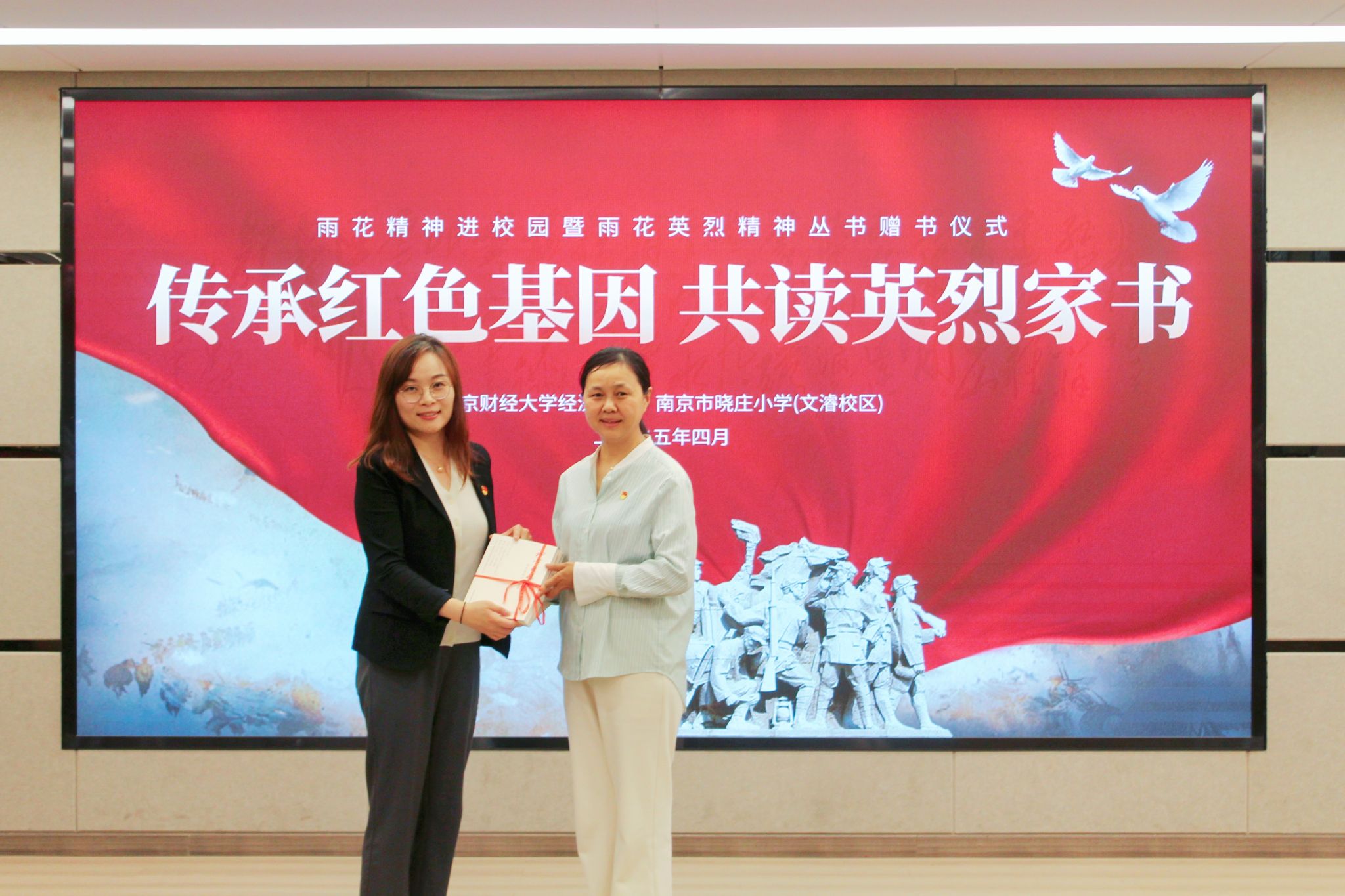 与南京市晓庄小学(文濬校区)联合举办“传承红色基因,共读英烈家书——雨花精神进校园暨雨花英烈精神丛书赠书仪式”。此次活动作为南京财经大学联合南京市雨花台烈士陵园管理局举办的“革命俊彦·高校荣光——雨花英烈中的青年学子”专题展暨雨花英烈事迹与精神丛书展的子活动之一,以红色文化为纽带,通过大中小学联动、师生共读等形式,生动展现了南京财经大学在推进思政教育一体化建设中的创新实践。
