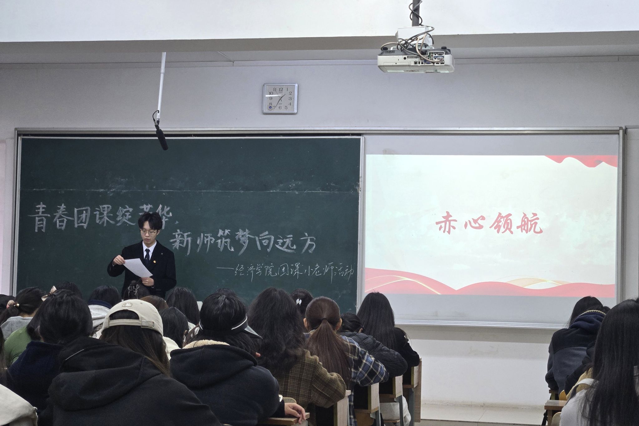 团委副书记乔河以“科技创新与青年使命”为题讲授专题团课。课程紧扣党的二十大报告中“强化现代化建设人才支撑”要求,通过解析中国航天科技集团平均年龄28.5岁的青年团队攻坚案例,生动诠释新时代青年“敢闯敢创、善作善成”的精神内核。乔河强调:“青年既是科技创新的生力军,更是民族复兴的先锋队”,号召同学们以“强国有我”的信念投身实践,在专业学习中锤炼本领,在创新浪潮中勇担重任。