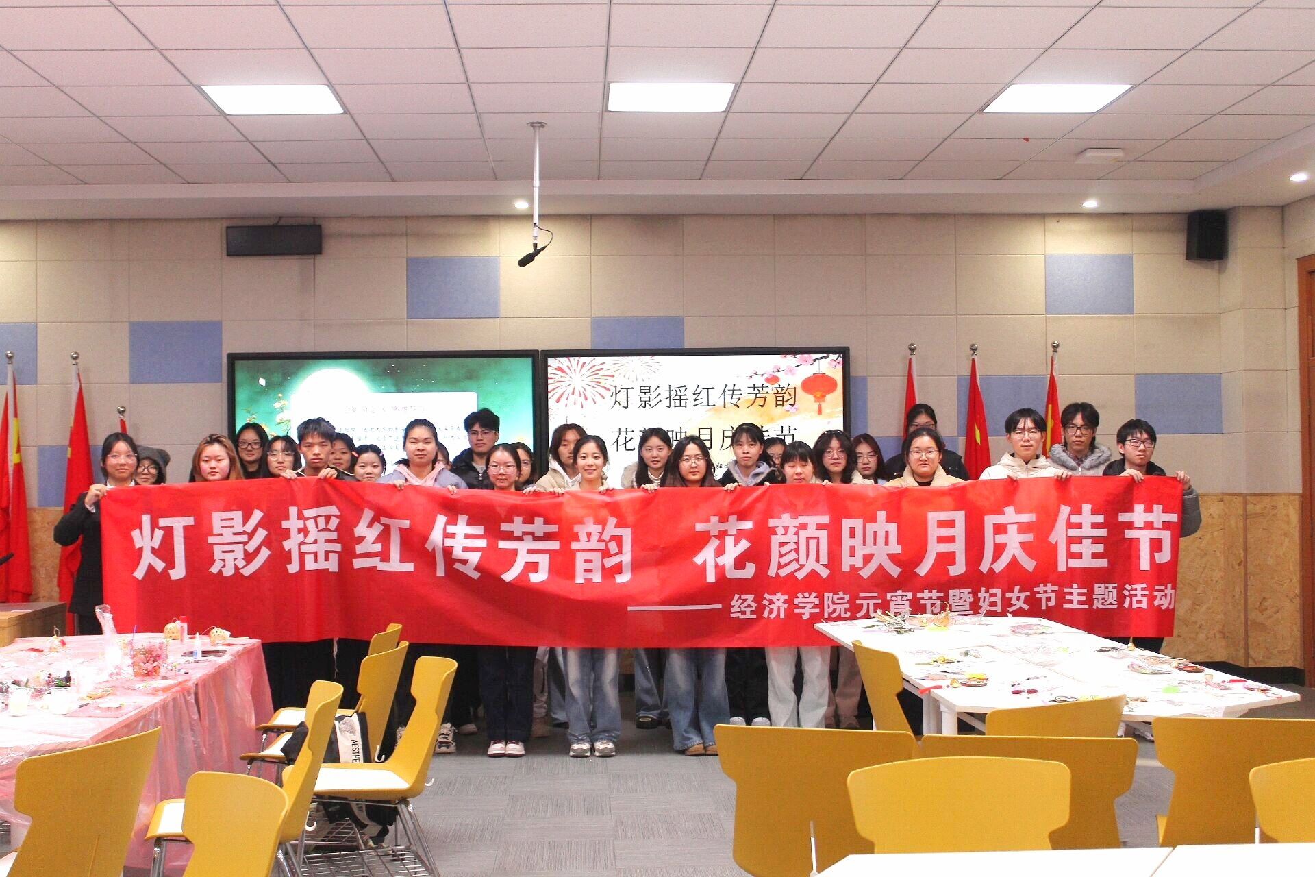于博文楼101室开展 “灯影摇红传芳韵,花颜映月庆佳节”元宵节暨妇女节主题活动。同学们欢聚一堂,在团圆氛围中感受民俗魅力,汲取奋进力量。