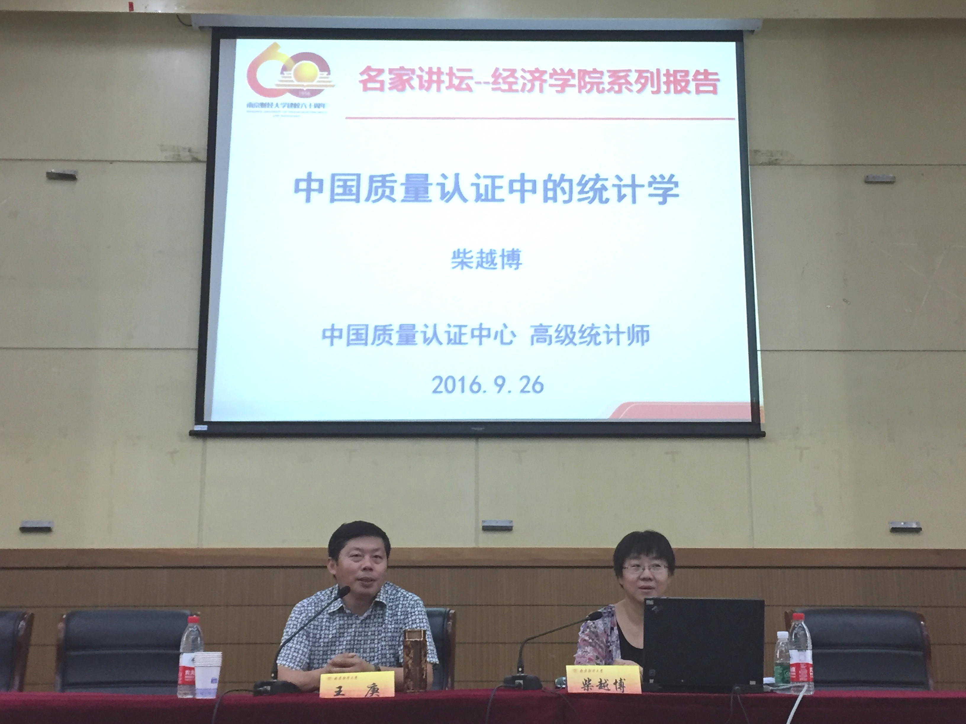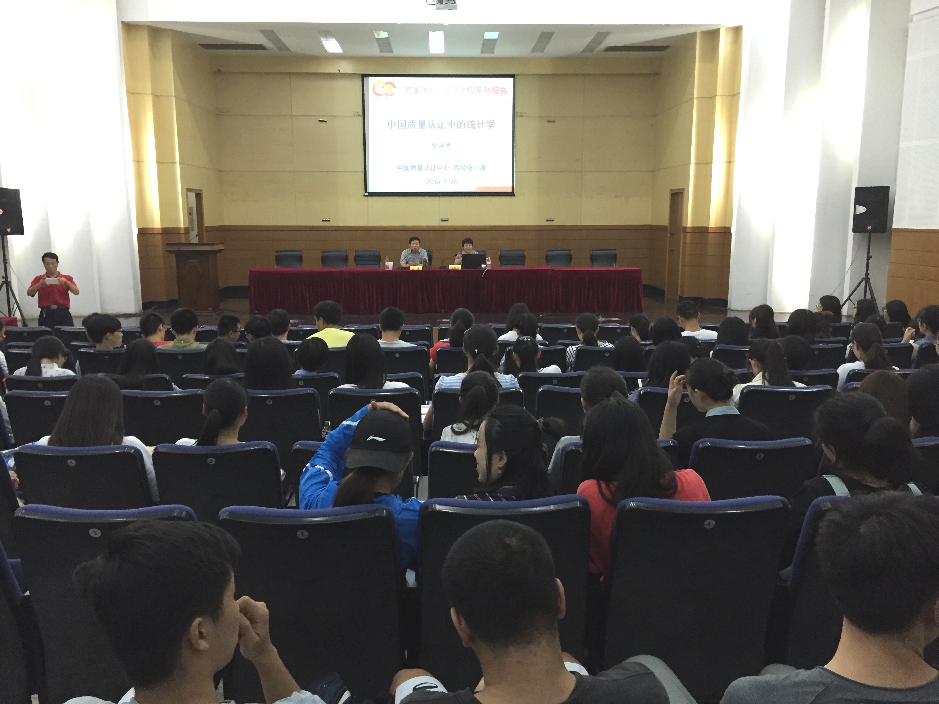9月26日下午,应凤凰娱乐城官方 邀请,凤凰娱乐城官方 计划统计专业8201班校友、中国质量认证中心体系认证部部长、高级统计师柴越博在凤凰娱乐城官方 仙林校区管理学科楼报告厅作了题为“中国质量认证中的统计学”的讲座。讲座由江苏省教学名师王庚教授主持。凤凰娱乐城官方 部分教师、统计专业学生聆听了讲座。