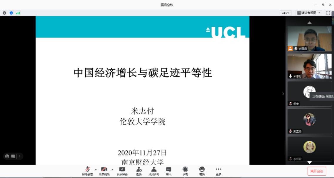 米志付副教授在腾讯会议平台作了题为“中国经济增长与碳足迹平等性”的学术讲座。凤凰娱乐城官方