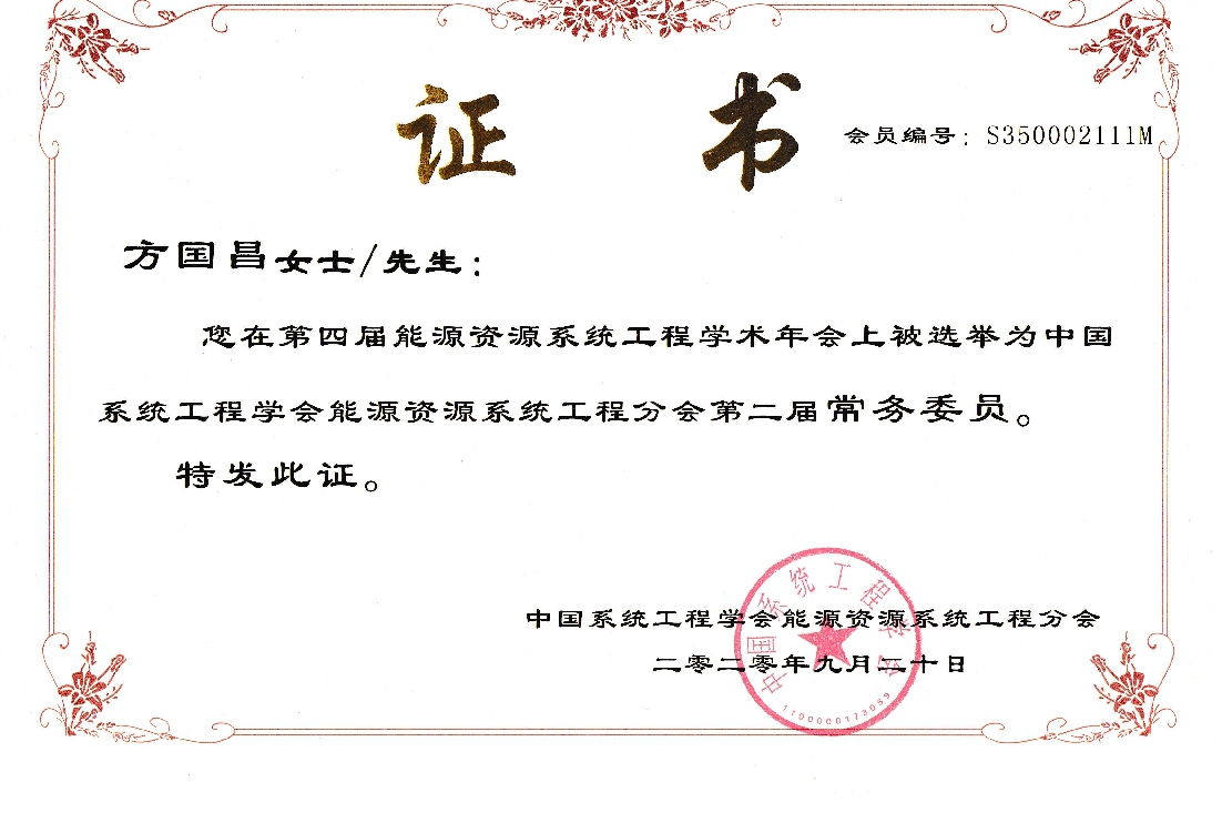 大学、北京理工大学等知名高校硕博士的成果进行点评。方国昌教授受聘为(第四届年会中当选)中国系统工程学会能源资源系统工程分会常务委员。