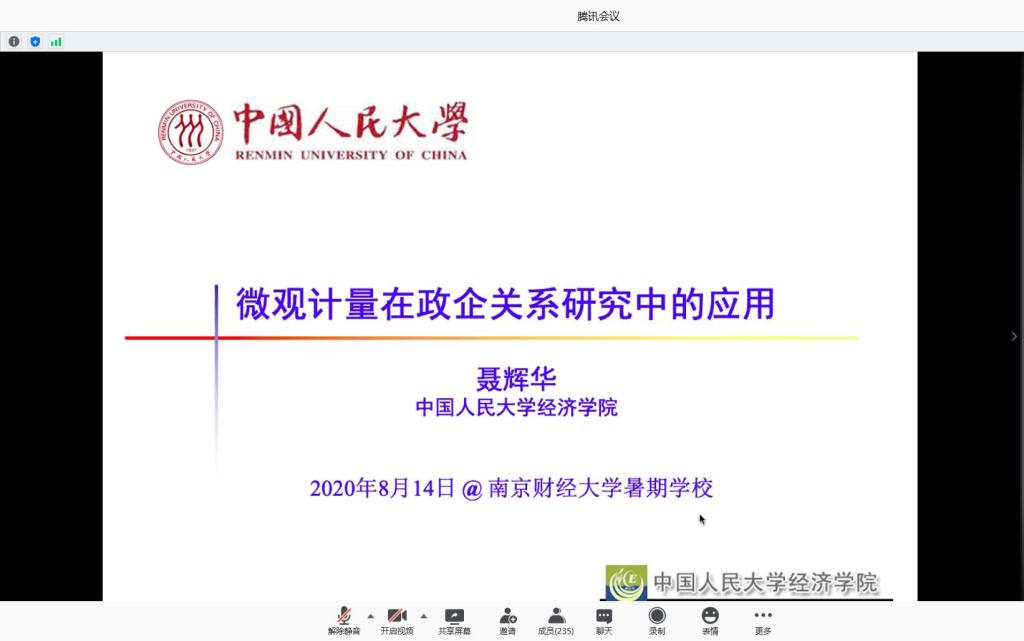 8月14日下午,中国人民大学聂辉华教授为暑期凤凰娱乐城官方
