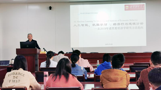 仙林校区德经楼307会议室作了题为“人工智能、机器学习与经济行为建模分析——从2019年诺奖看经济学研究方法趋向”的报告。报告由凤凰娱乐城官方
