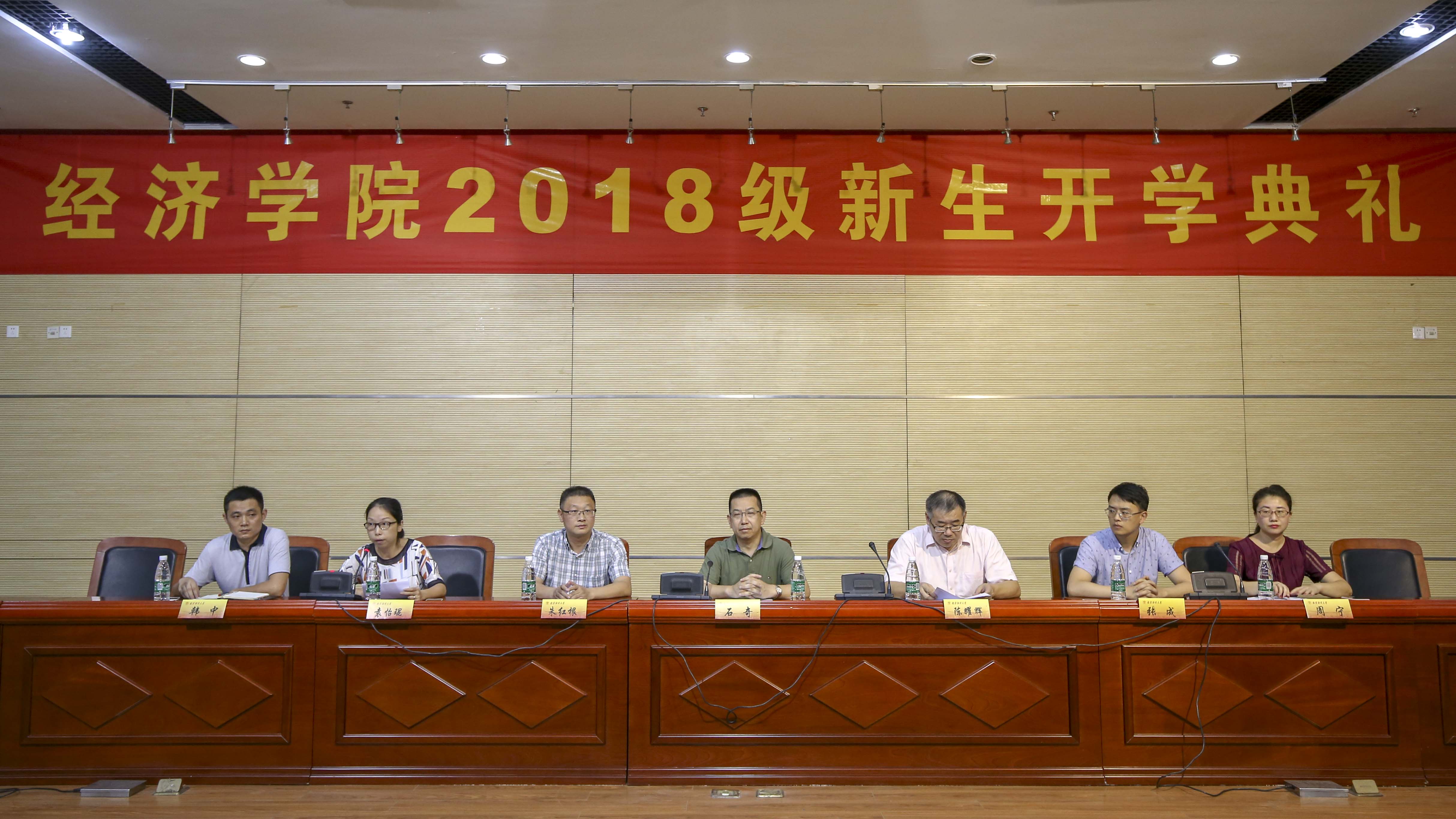院长石奇,党委书记陈耀辉,党委副书记袁怡琨,副院长张成、朱红根,经济系主任周宁,统计系主任韩中等老师,凤凰娱乐城官方