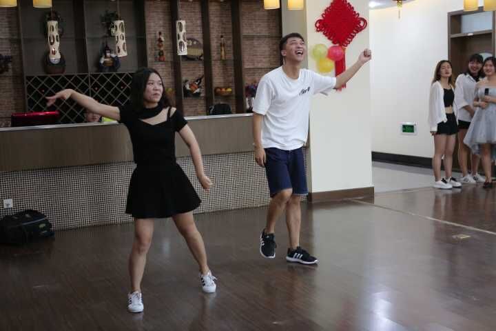 研究生许莲清对唱了一曲《告白气球》,得到台下学员们的掌声与鲜花鼓励。游戏“你说我猜”精彩纷呈,考验的是学员们的语言沟通和默契程度,五人一组,一位说词人对词进行描述,组员猜词,耗时最短队伍获胜。联欢会最后一个节目是全场共舞环节,先由舞者领跳展示了一曲《爱的华尔兹》,再邀请台下学员们一起跳舞,现场反响热烈,学员们受到气氛感染,纷纷手拉着手步入舞池,展现自己独特的舞姿。至此,联欢会缓缓落下帷幕。