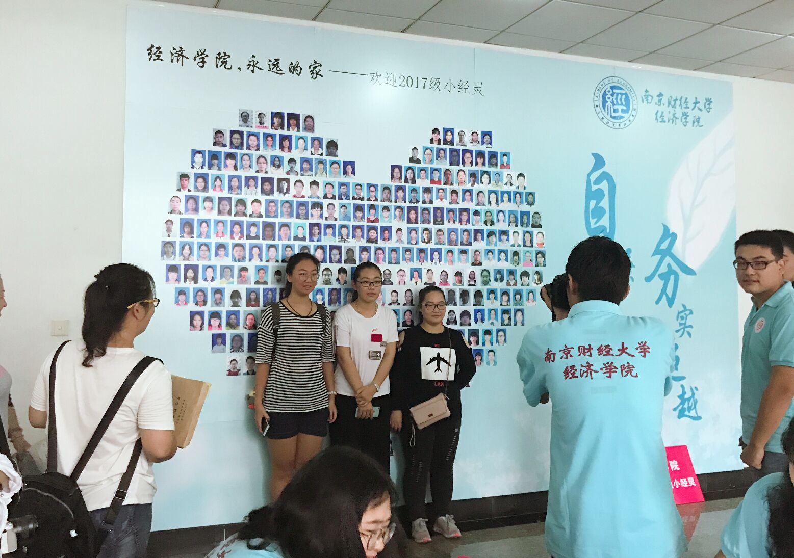新生报到处同时设有新生“心形墙”,新生可以从近300张照片中找到自己,站在凤凰娱乐城官方