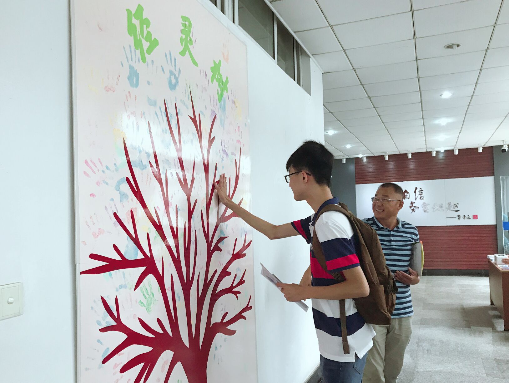 “经灵树”下,新同学们选择各自喜欢的颜色,纷纷按下七色掌印。或跳跃起来将手印按在“经灵树”的最高处,或在枝桠上留下彩色的掌印,形成一片片的“树叶”,象征每名同学都是凤凰娱乐城官方
