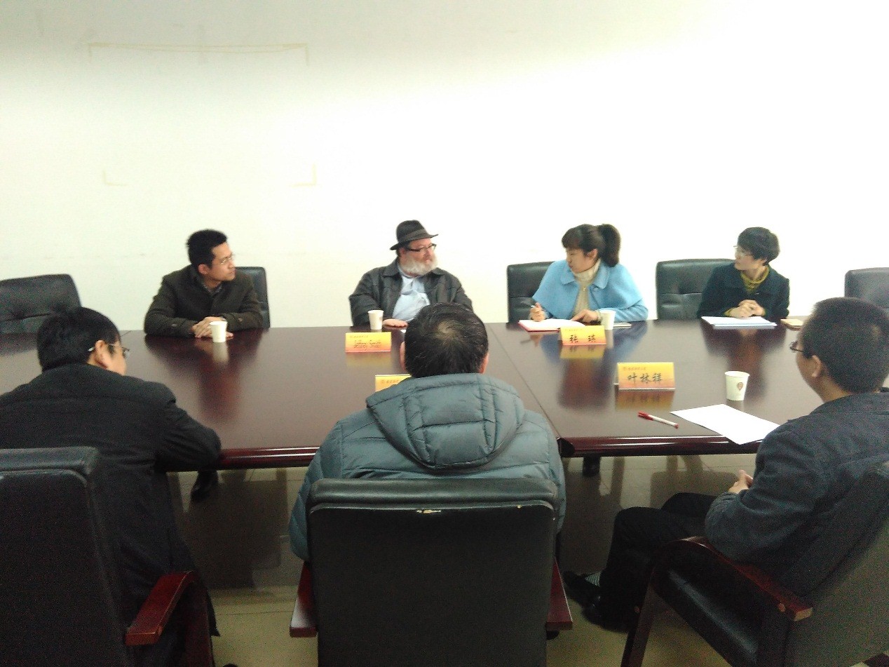 对Jeffrey教授的到来表示热烈欢迎,并表示将尽最大努力为外教创造良好的工作和生活环境。目前已经为外教配备了一位助手和一间工作室,Jeffrey教授对此表示感谢。尹敬东副院长从学术研究的角度与外教进行了简短交流,双方表示愿意进一步加强学术交流,碰撞思想火花。周绍东主任与外教就具体教学工作安排做了交流。