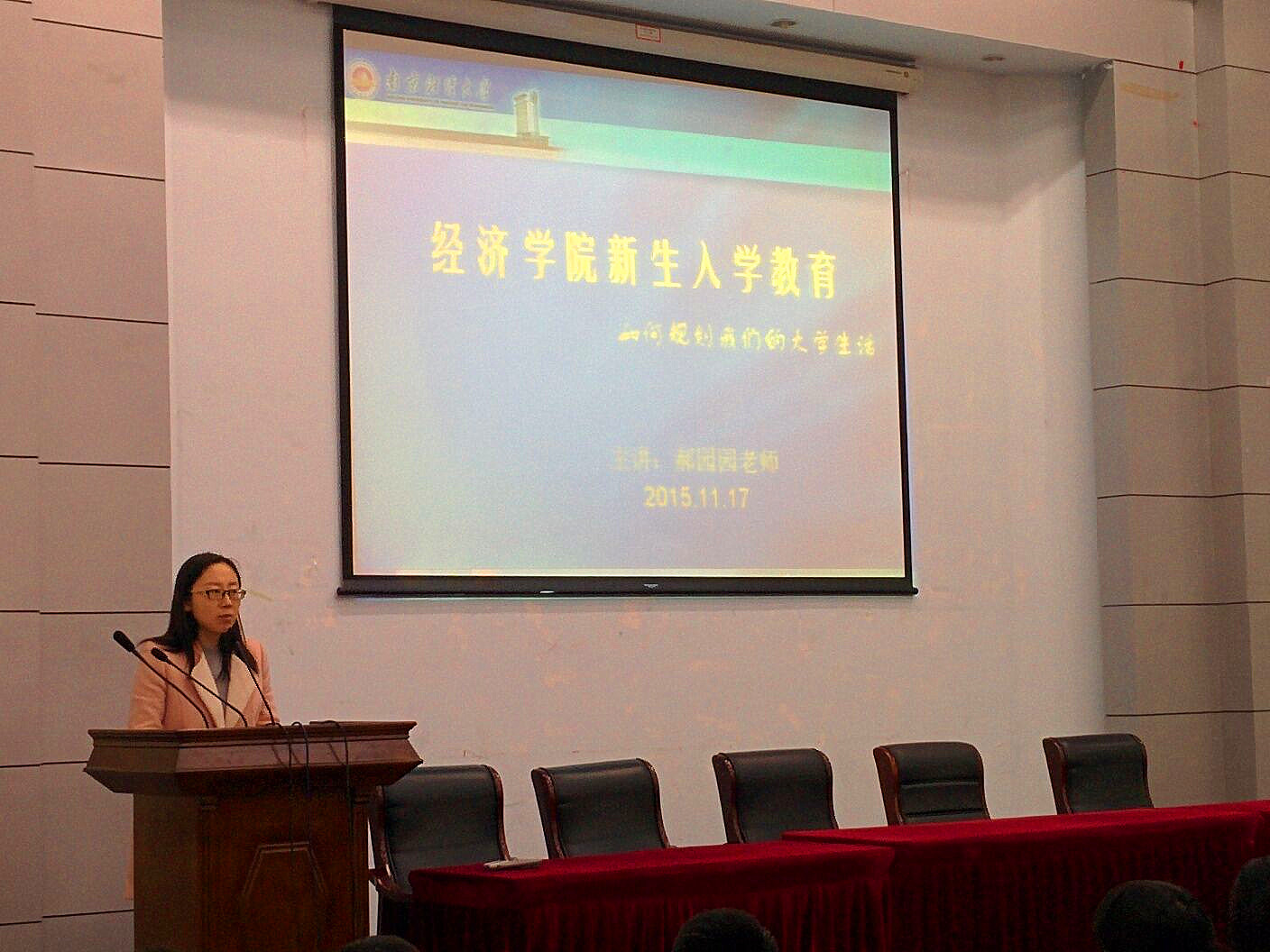 党委副书记郝园园老师在专一报告厅为凤凰娱乐城官方