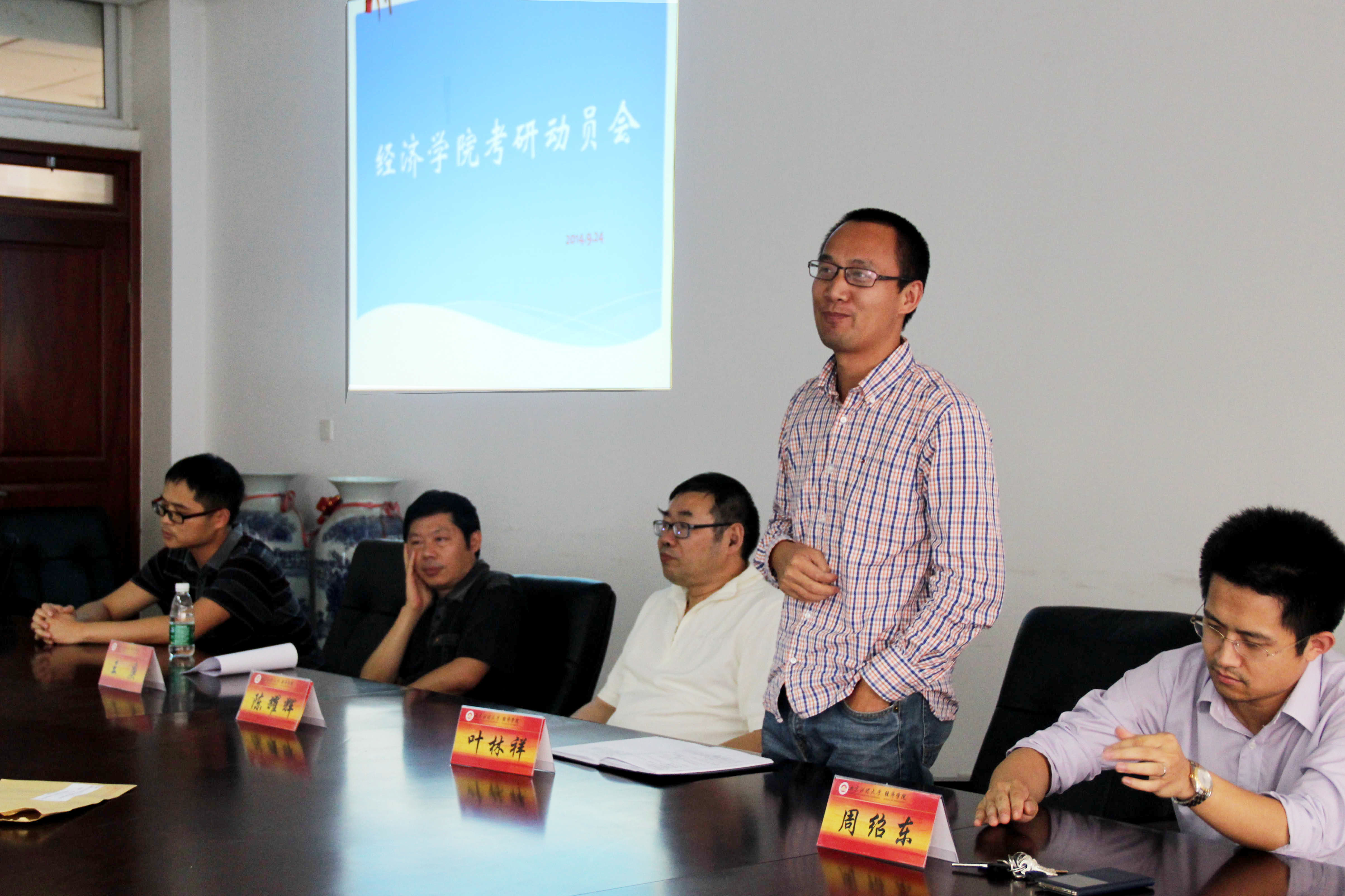 在经济学科楼307会议室召开2015届考研动员会。本次动员会邀请了院长陈耀辉教授,副院长叶林祥副教授,经济系主任周绍东副教授,以及王庚教授,李庆海博士。领导老师们就考研形势、专业特点以及各自的经验与同学们进行面对面交流。