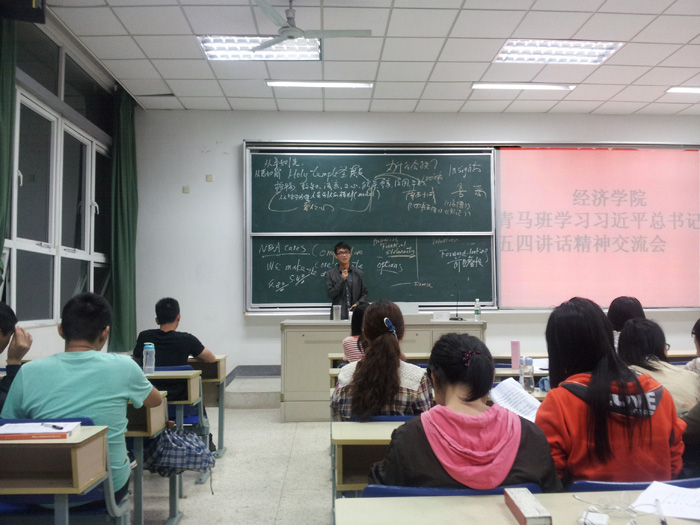 学习习近平总书记五四讲话精神交流会在专一103举办。此次活动采取小组讨论的形式,各小组的同学在小组内讨论自己对五四精神的见解和感悟。最后,有六名同学代表各组上台发表关于五四精神的感悟。上台参与交流同学有曾小强同学,张美玲同学,尹娜同学,承维同学,陈栋同学,袁飙同学。