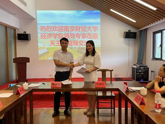 交流会上,党员同志们一起观看了天王镇宣传片,对天王镇的产业发展情况有了一个直观的了解。天王镇范镇长向与会领导和专家们详细介绍了天王镇的特色产业发展情况、乡村振兴取得的成效以及目前天王镇金融支持乡村振兴领域存在的问题,希望能够通过支部共建,深化校地合作,为天王镇全面实施乡村振兴注入更多金融动力,探索出金融支持乡村振兴的天王样板,为句容建设“一福地四名城”贡献天王力量。
