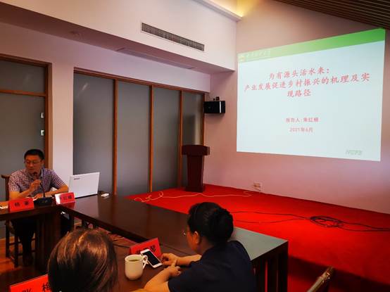 院长朱红根围绕乡村振兴、农业发展和农民增收作了“为有源头活水来:产业发展促进乡村振兴的机理及实现路径”的主题发言。朱院长从理论高度深入阐述了产业发展促进乡村振兴的作用机理,并从建设中国特色的“一村一品”产业链;发挥乡村功能价值,丰富乡村产业发展新业态;延伸加工链条,拓展产业增值增效新空间;构建乡村产业品牌体系;培育经营主体,构建乡村产业发展新雁阵;推进创业创新,培育乡村产业发展新动能;发展乡村产业必须贯彻落实绿色发展理念,要将生态和绿色铸造为产业发展的基因和灵魂;强化联农带农,形成乡村产业融合发展新优势;推进城乡融合发展等9个方面详细分析了产业发展促进乡村振兴的实现路径。