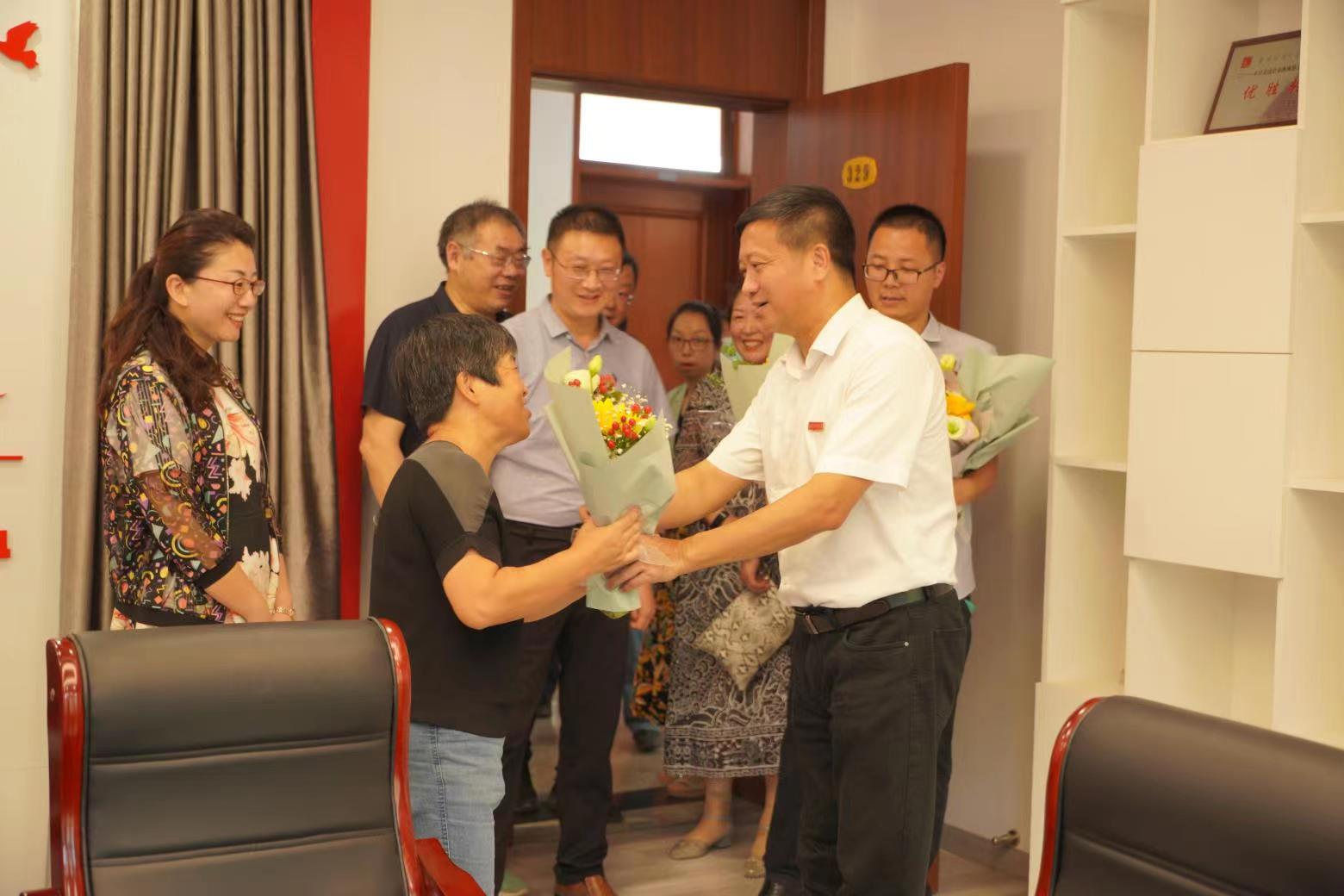 教师代表崔向阳、郭存芝、周宁、黄晓娟送上鲜花,对凤凰娱乐城官方