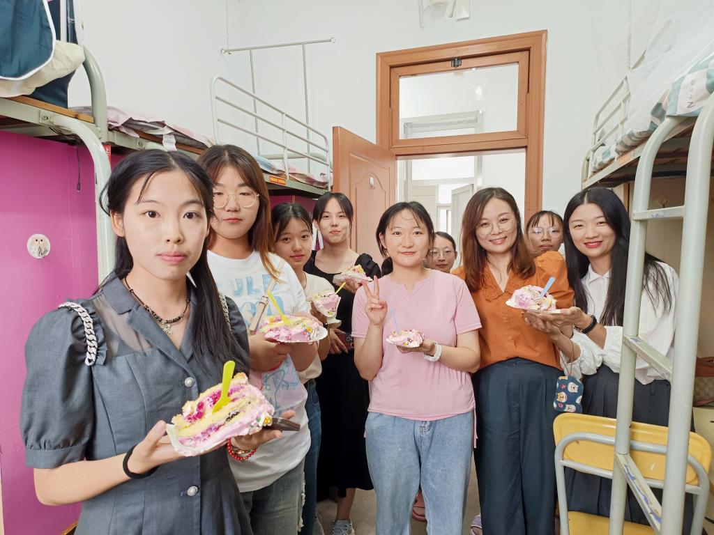 党委书记张圣兵、党委副书记贾亦璞、新生辅导员徐昊翔、学工班主任梁少颖、团委书记潘怡在报到日当天分别走进1号宿管站和4号宿管站学生公寓,和新生们近距离接触,与在报到当天过生日的两名新生共同庆生,分享成长的喜悦,送上真挚的祝福。