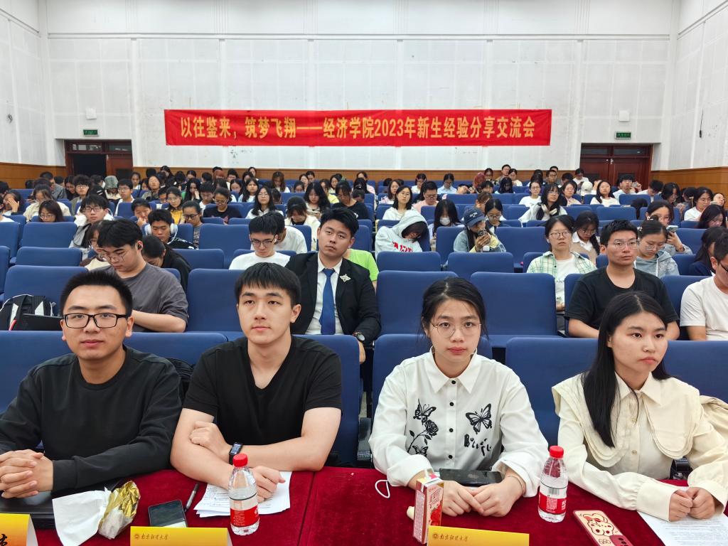 邀请经济2101班徐晓宁,数经2101班张雅玲,经统2102班游涛、数统2101班王星杰为新生开展学业、职业生涯规划讲座,介绍分析财经行业发展现状和发展前景,分享四六级备考、学生社团工作、学科竞赛、职业选择和生涯规划等方面的宝贵经验,勉励新生抓住宝贵学习时间打牢基础,提升专业技能,同时注重锻炼实践能力、组织协调能力、团队协作能力,不断提高综合素质,厚植发展潜力。