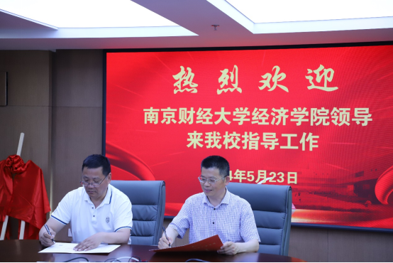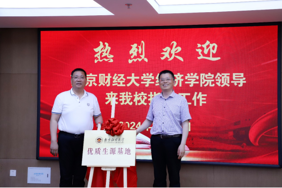 最后,张圣兵书记与石鑫校长共同签署了南京财经大学与江苏师范大学附属中学生源基地协议书,并进行了授牌。