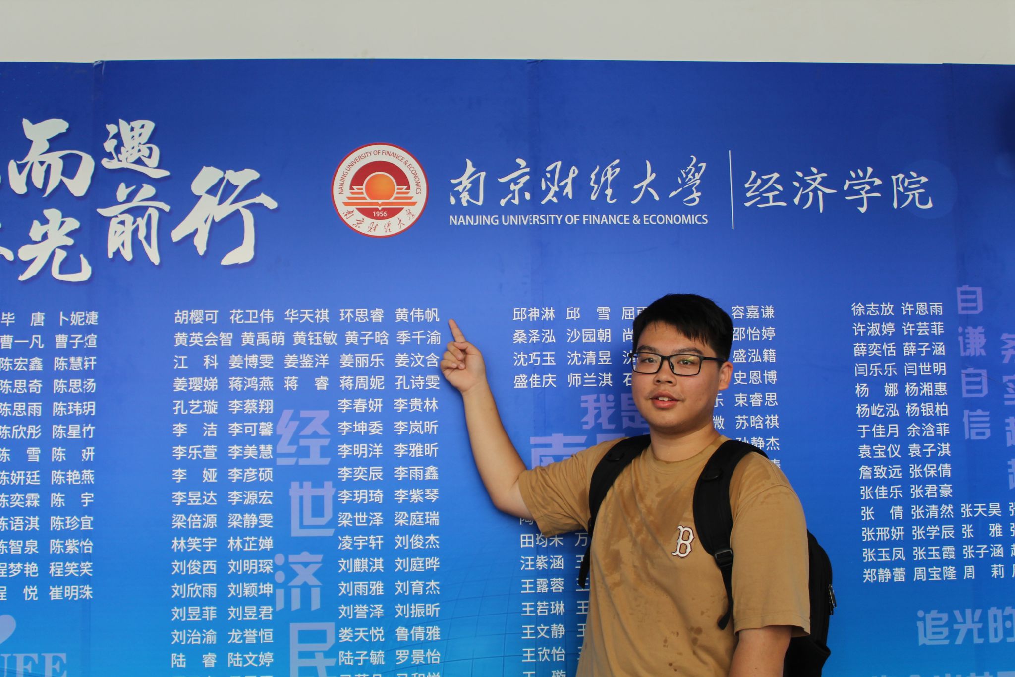 还设置了姓名墙和打卡框。姓名墙上有以340位新生姓名组成的“2024”字样,在“2024”周围印有“自谦自信务实超越”的校训,左上角有“追光而遇,沐光前行”的字样。打卡框设计为录取通知书的形式,左边是框中正好露出南财地标“大球”,右边为习近平总书记对广大青年的遵遵教诲,寓意着凤凰娱乐城官方