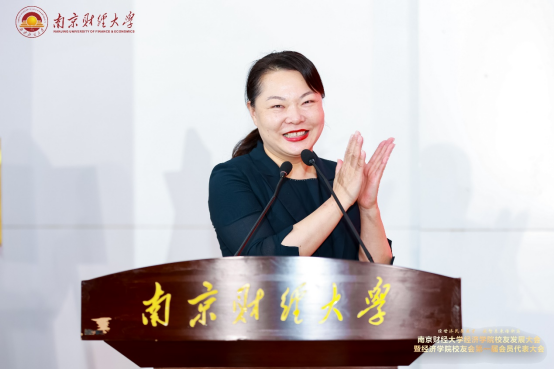 校友会的筹备工作,并强调校友会是校友与母校之间的“连心桥”、事业发展的“助推器”、社会服务的“辐射源”。她鼓励第一届理事会以开放之姿汇聚人心,以务实之举服务校友,以创新之志回馈母校。同时她号召广大校友们继续关注和支持母校发展,共同为实现南京财经大学的高质量发展贡献力量。