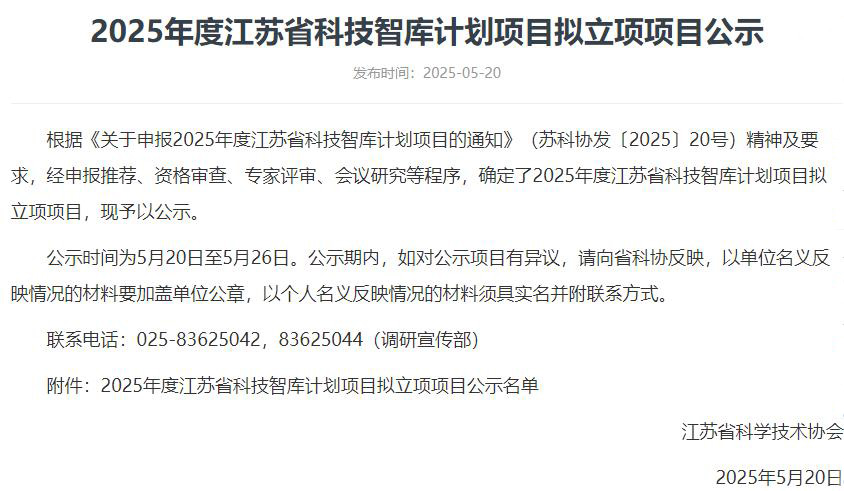 近日,2025年度江苏省科技智库计划项目遴选结果出炉,凤凰娱乐城官方