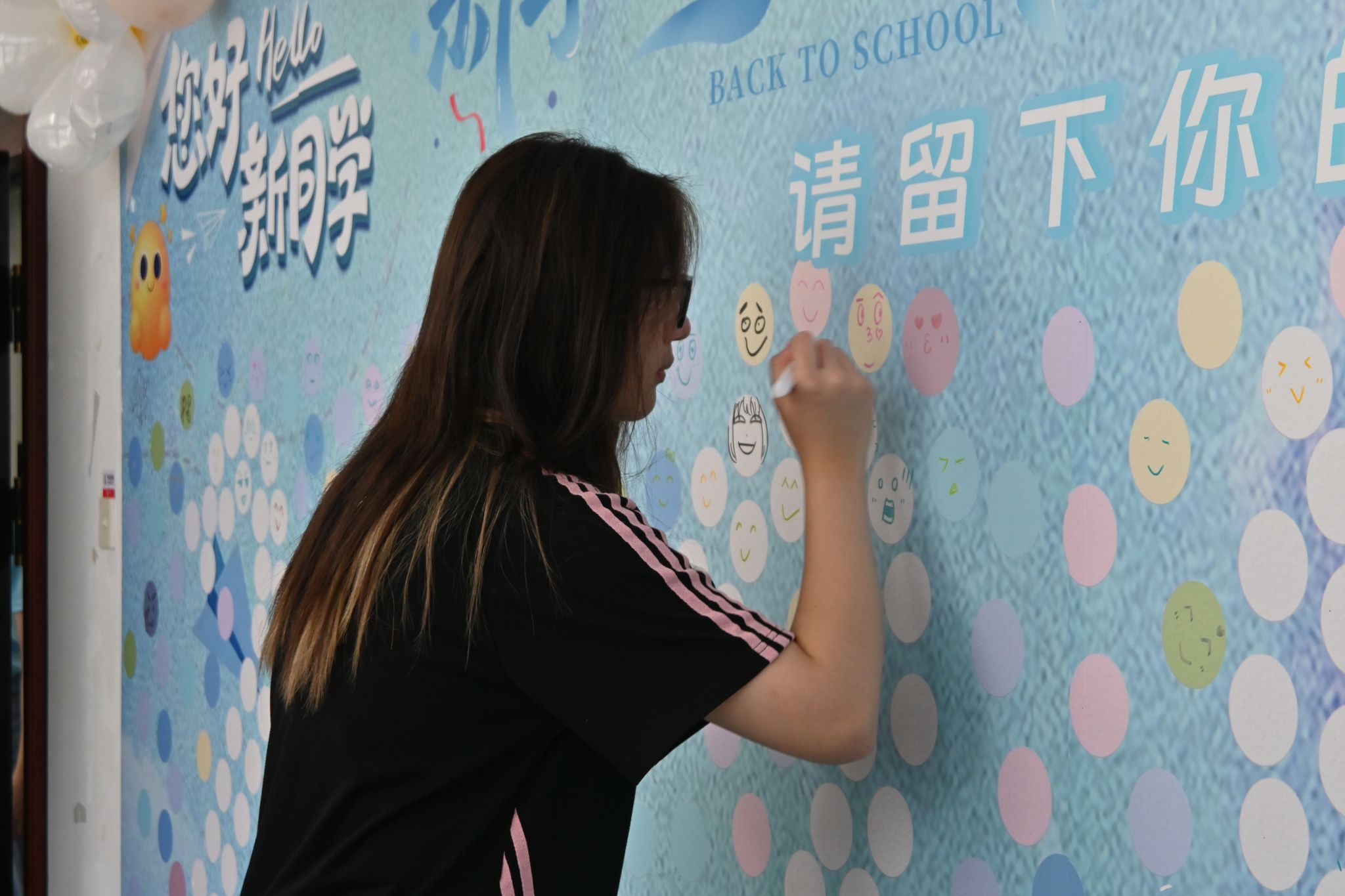 还设置了可供打卡的笑脸墙。“新学期,新起点”,每一位新生都可以用马克笔绘制出自己心中的笑脸。342张灿烂的笑容共同组成“2025”的字样,表现出他们对大学生活的期待与喜悦,并且将始终以乐观的心态迎接大学四年磨炼与挑战。