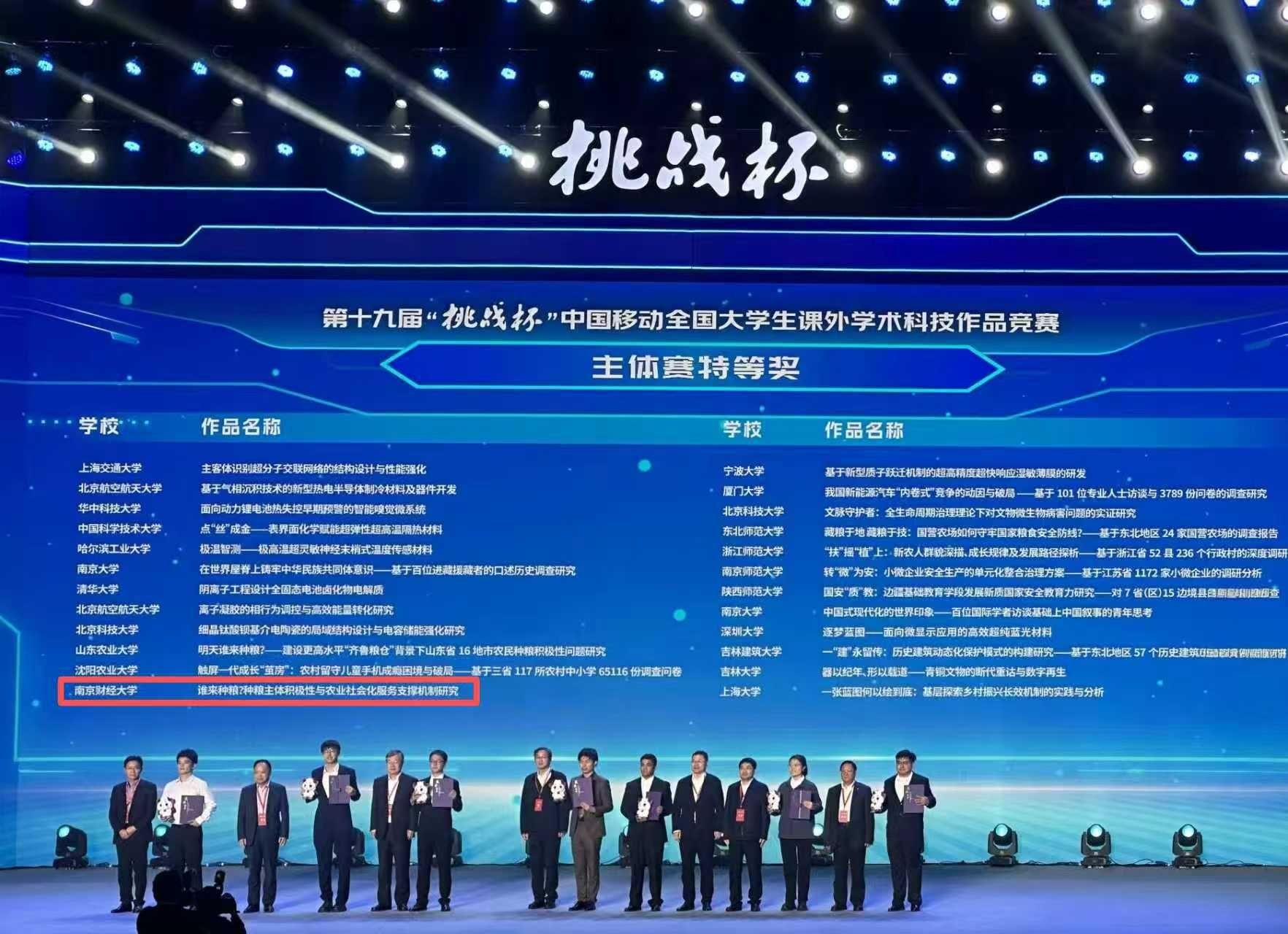 参赛作品《谁来种粮?种粮主体积极性与农业社会化服务支撑机制研究》表现优异,脱颖而出,在主体赛中获特等奖1项。这是凤凰娱乐城官方