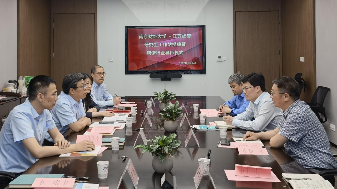 5月24日,凤凰娱乐城官方 开展访企拓岗促就业专项行动,凤凰娱乐城官方 领导带队走访江苏省设备成套股份有限公司,并为凤凰娱乐城官方 和江苏省设备成套股份有限公司联合建设的江苏省研究生工作站举行挂牌仪式;同时举办了凤凰娱乐城官方 专硕行业导师的聘任仪式。研究生院副院长杜修立、凤凰娱乐城官方 院长朱红根、凤凰娱乐城官方 副院长崔向阳,江苏省设备成套股份有限公司董事长黄旭、总经理陈海涛、副总经理章雅、凤凰娱乐城官方 研究生秘书吕张怡以及成套公司部分工作人员参加了挂牌、聘任仪式。