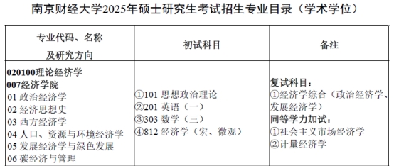 2025年硕士研究生招生学科(专业)共5个:0201理论经济学(学硕,全日制)、0202应用经济学(数量经济学方向,学硕,全日制)、0714统计学(学硕,全日制)、0252应用统计(专硕,全日制)、0258数字经济(专硕,全日制)。