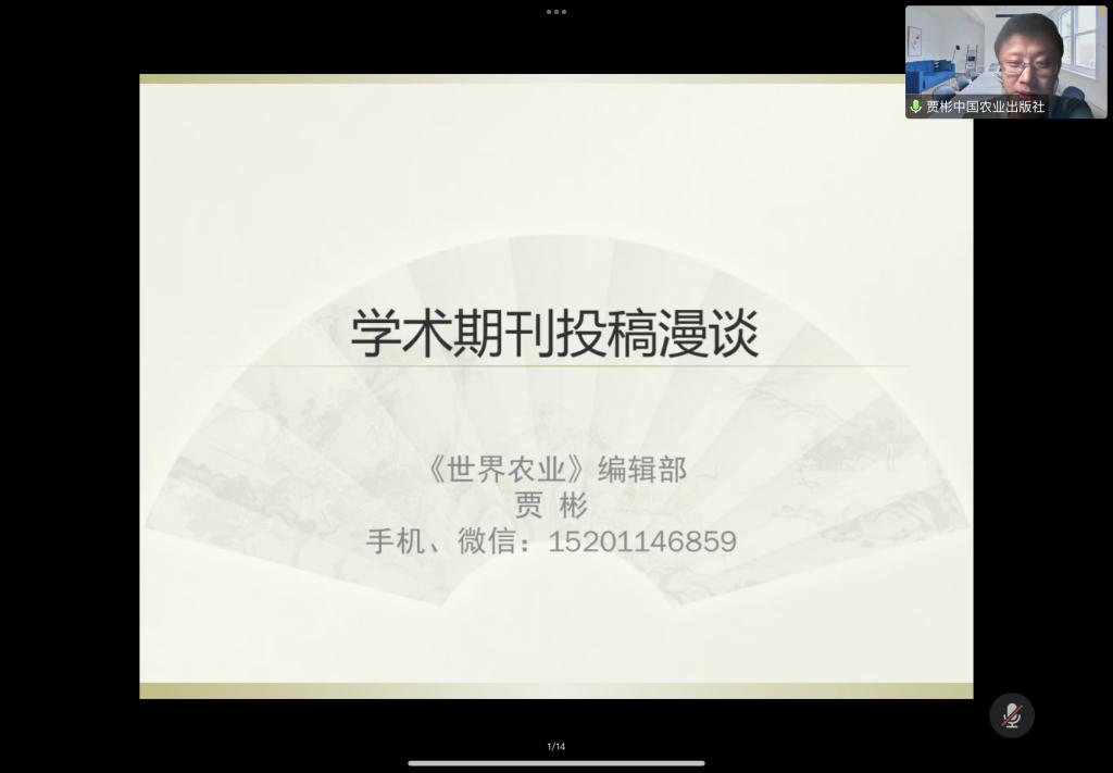9月28日晚,中国农业出版社期刊出版分社副社长、《世界农业》执行主编贾彬研究员在线上为凤凰娱乐城官方