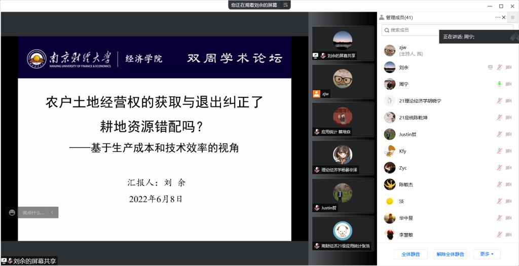 在线上成功举办了双周学术论坛。本期论坛由经济系讲师刘余带来题为《农户土地经营权的获取与退出纠正了耕地资源错配吗?》的学术报告。经济系周宁副教授主持了本次论坛,凤凰娱乐城官方