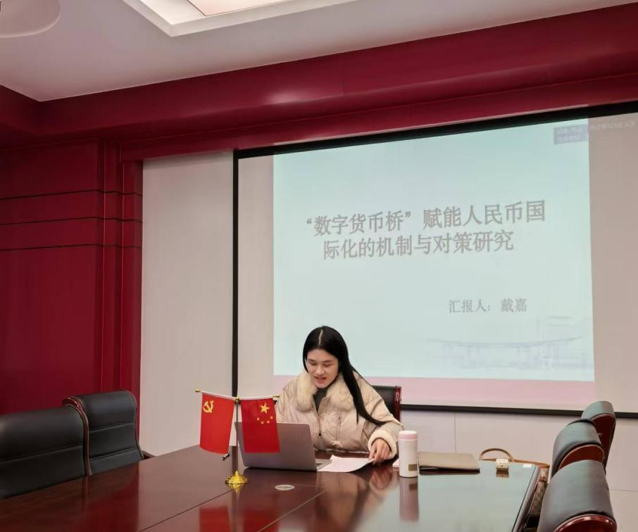 在德经楼329会议室举办了双周论坛。今天论坛由戴嘉老师带来题为“‘数字货币桥’赋能人民币国际化的机制与对策研究”的学术交流。凤凰娱乐城官方