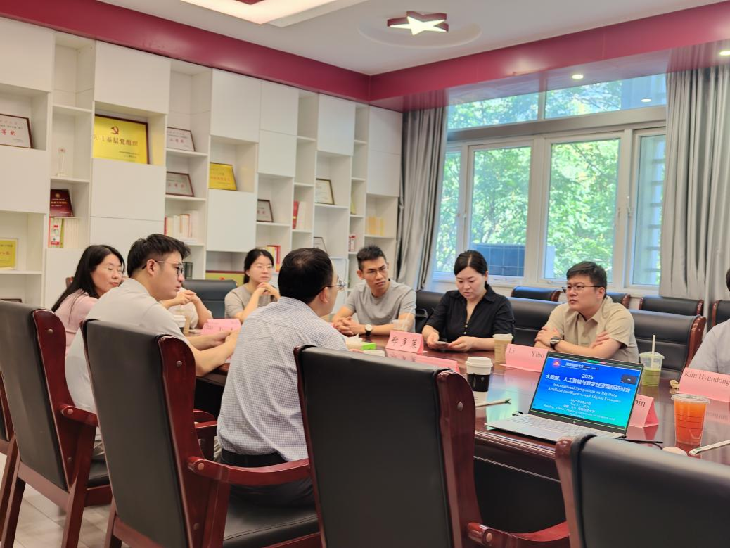 主办的“大数据、人工智能与数字经济国际研讨会”在德经楼329会议室成功召开。会议聚焦大数据与人工智能在数字经济中的前沿应用,吸引了来自中韩两国多所高校的专家学者参与,围绕相关学术议题展开了深入交流,并就数字经济与统计学科的融合发展进行了合作探讨。会议首次采用AI同声传译软件在线翻译,实现中韩语无障碍交流。